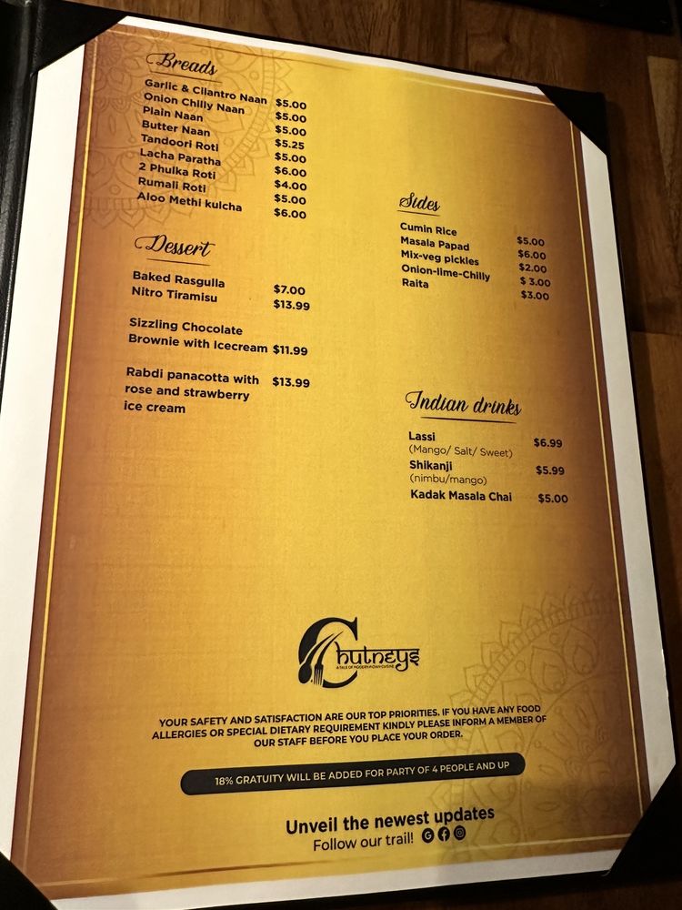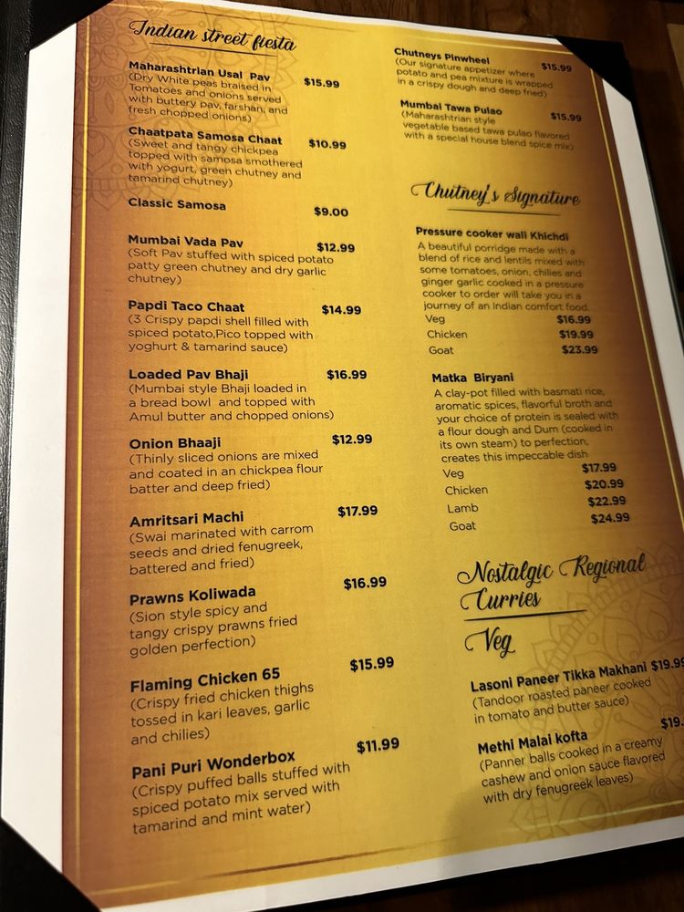 Chutneys Bellevue Menu (Update 2025)